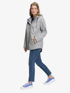 MélangeSoftshellRegenjasDrukknopsluitingCapuchon met trekkoordVerborgen ritsRitszakken aan de zijkantFleece binnenvoeringLicht gevoerdRitssluiting