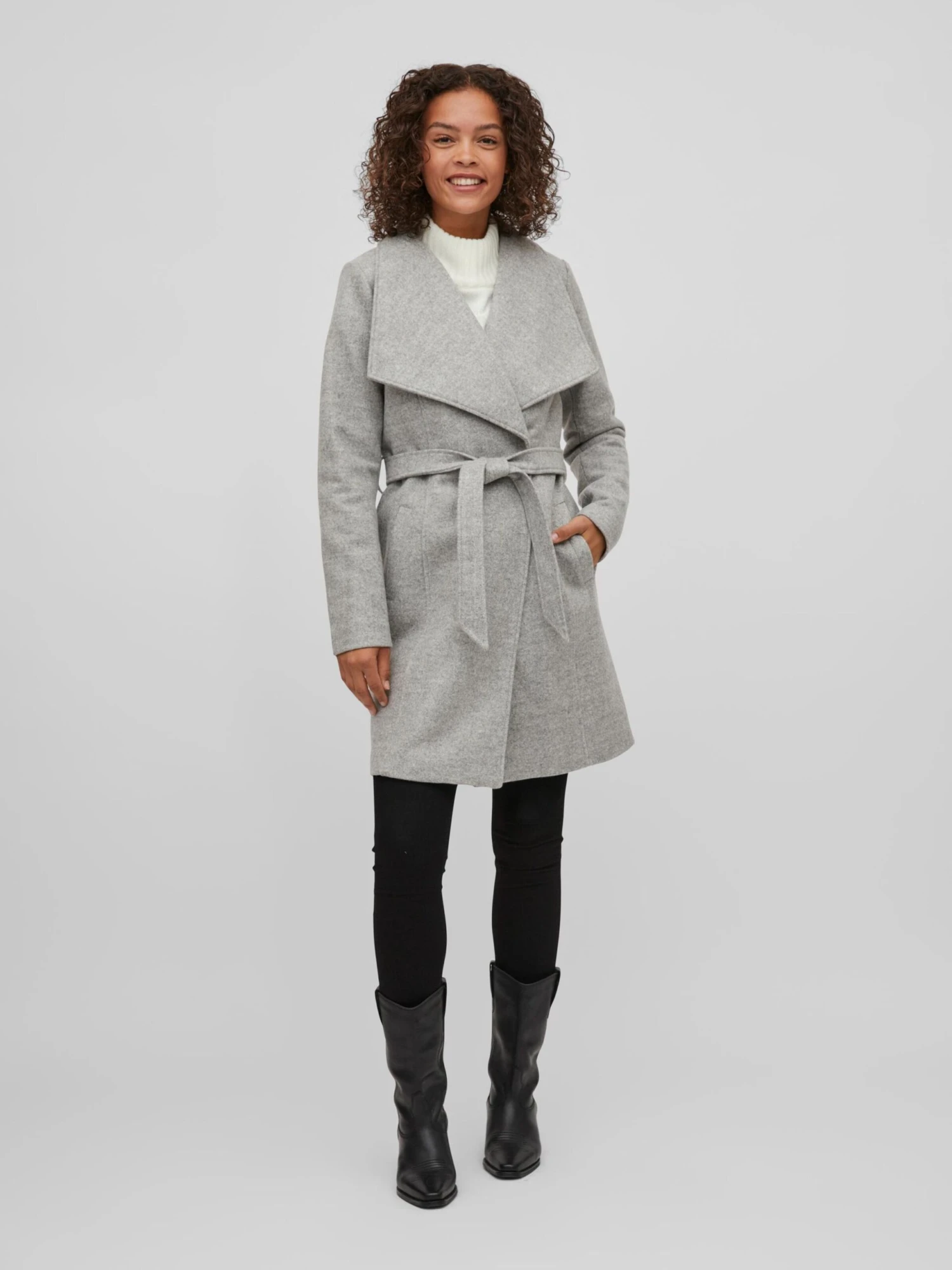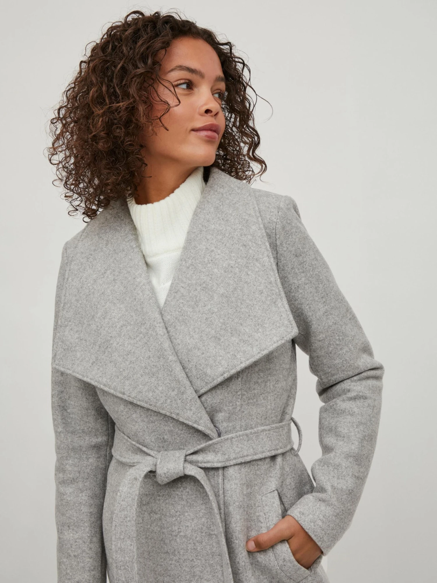 MélangeKlassieke mantelRevers kraagTailleriemBuigzame gripRiemlussenLicht gevoerdDrukknoop