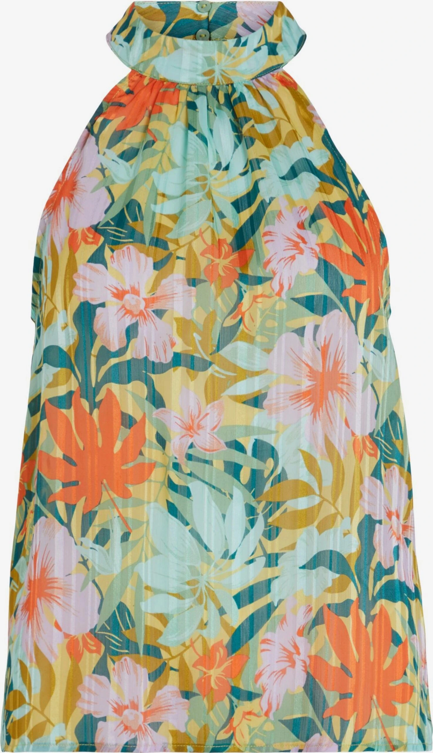 BloemenprintOpstaande kraagOpstaande kraagCut-outsGedrapeerdGevoerde zoom/randAmerikaanse schouderRechte zoomKeyholesluitingAll-over patroonGladde stofBlouseshirtKnoopsluiting