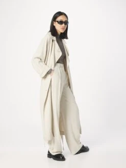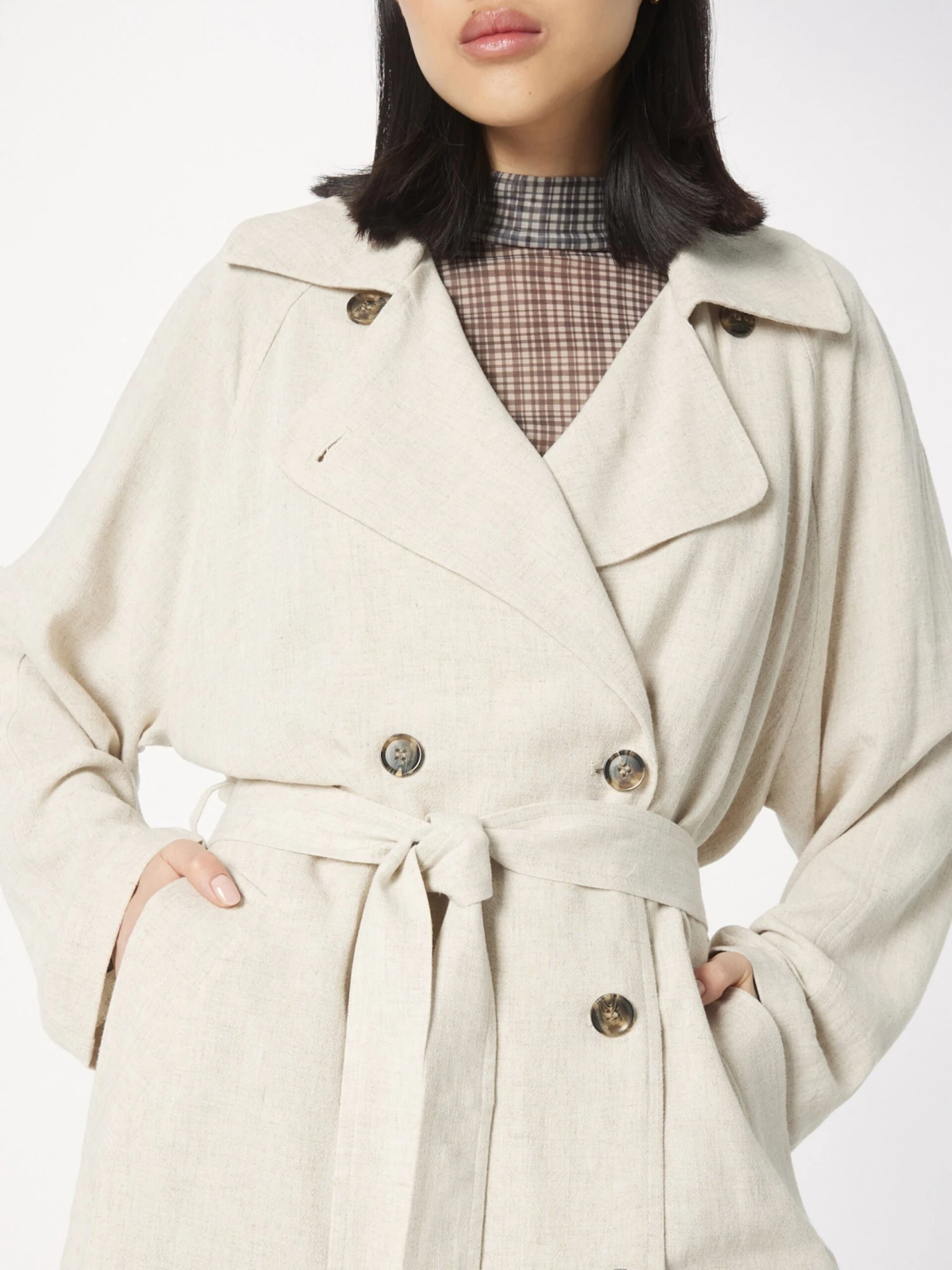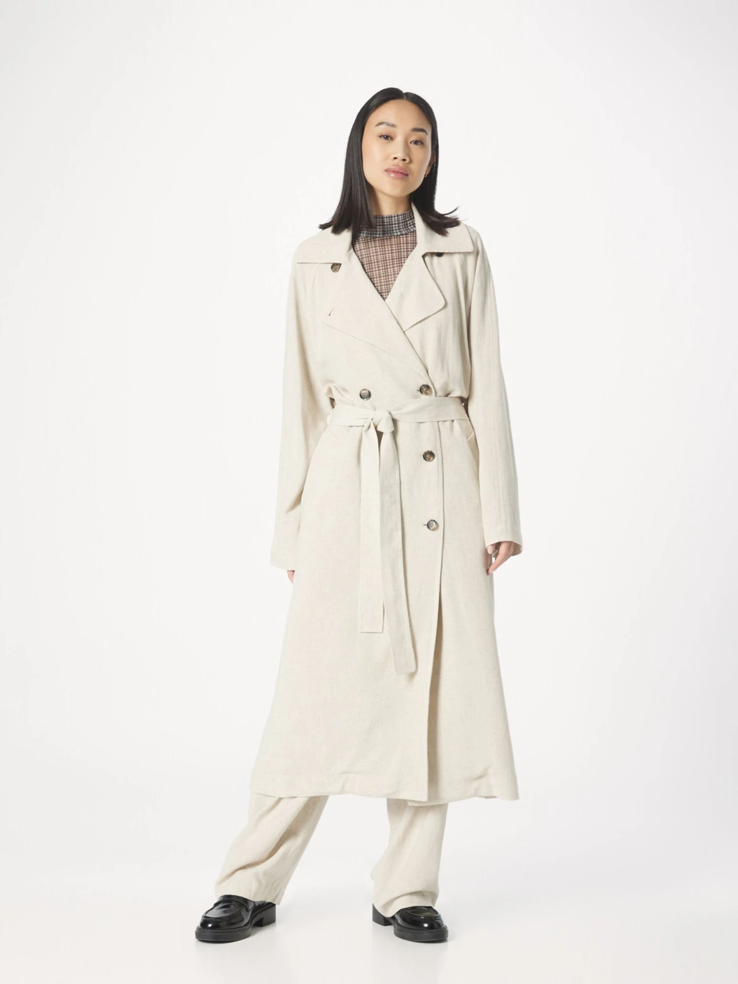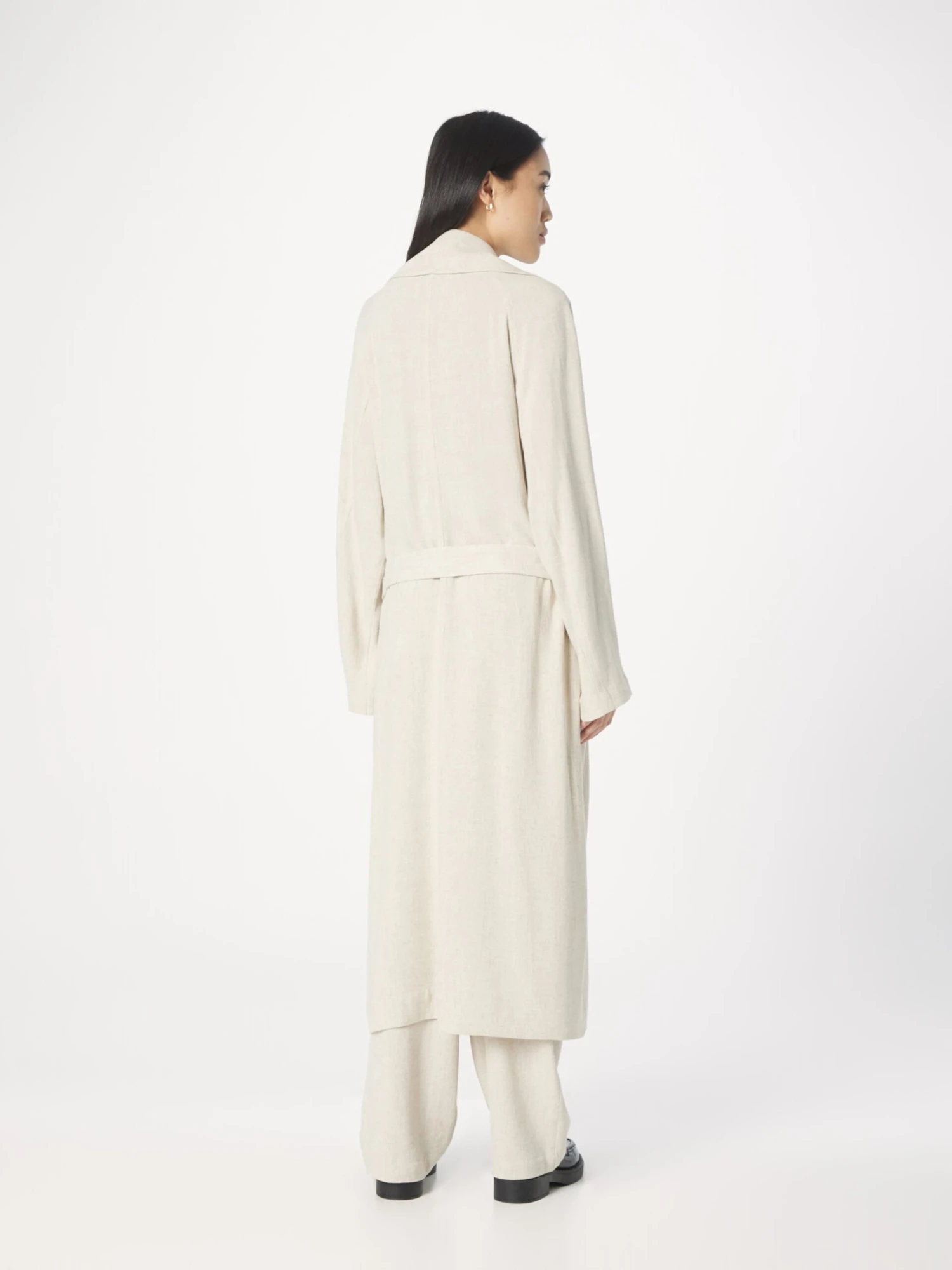 MélangeViscoseTrenchcoatRechte zoomKnop placketRevers kraagOm te knopen/bindenZakken aan de zijkantTailleriemOp staal nadenVoelt zacht aanNiet gevoerdKnoopsluiting